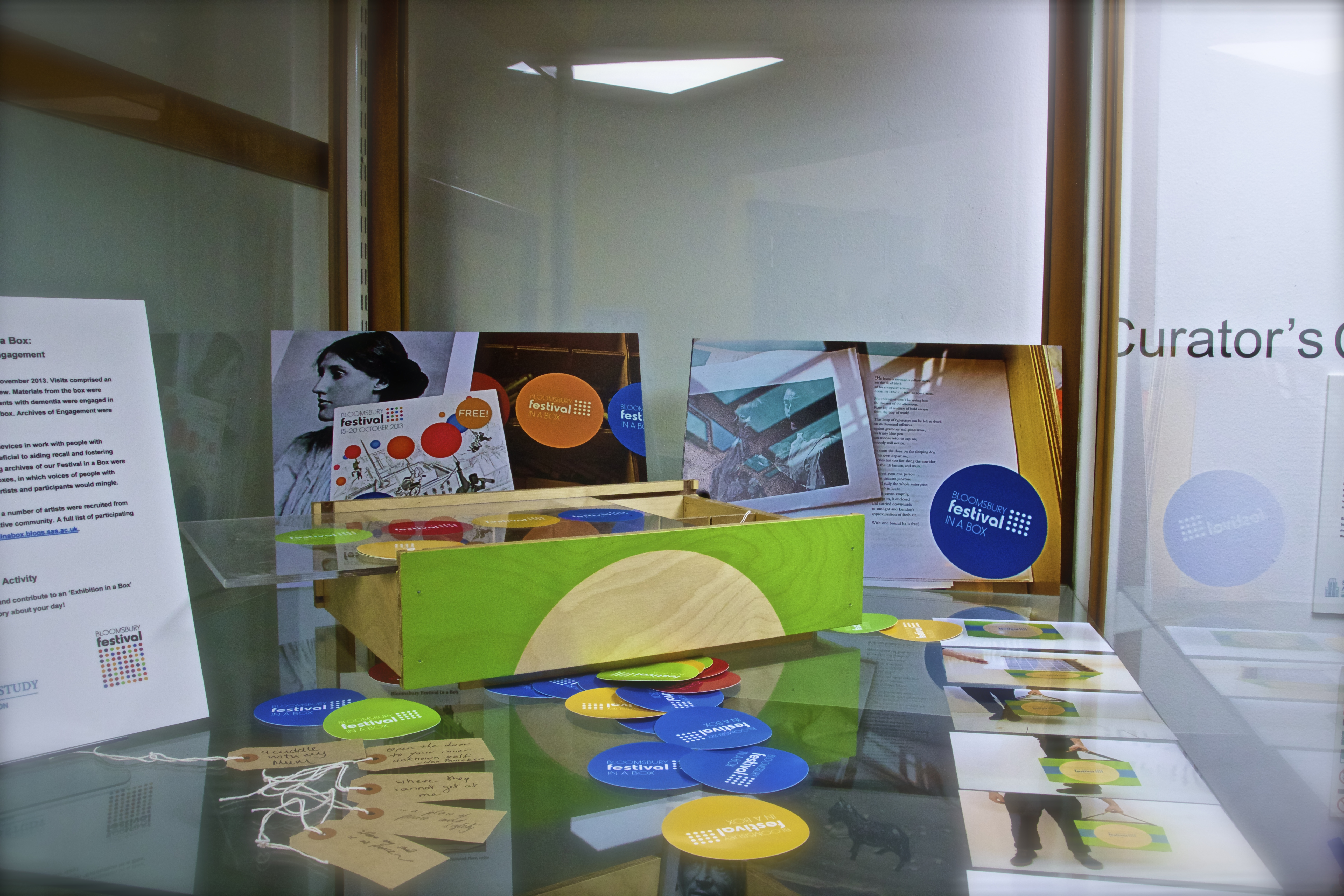 Between August 2013 and June 2014 the AHRC-funded research project ‘Bloomsbury Festival in a Box: engaging socially isolated people with dementia’. took a mobile version of a community arts festival into the homes six of people living with dementia. A collaboration between the School of Advanced Study, the Bloomsbury Festival, Age UK Camden and University College London, the project explored the value of using the arts to engage people with dementia. In the process, it built up seven interlocking ‘memory archives’ of stories, objects and original artworks.
